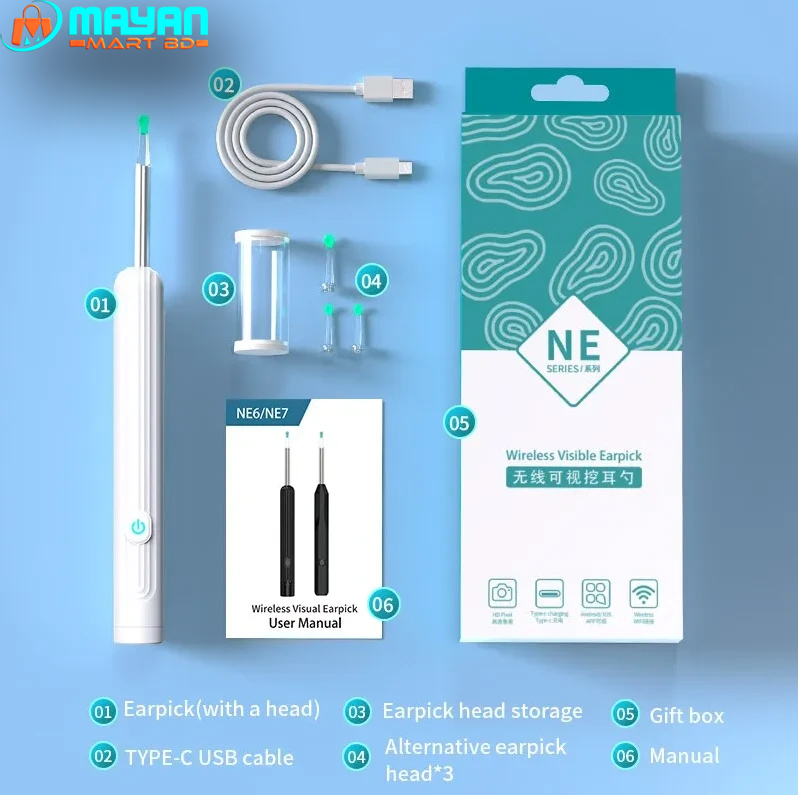 এই ওয়্যারলেস বুদ্ধিমান ভিজ্যুয়াল ইয়ার পিকটি একটি স্মার্ট ভিজ্যুয়াল অ্যাপের সাথে আসে যা আপনাকে আপনার কানের খালের ভিতরে পরিষ্কারভাবে দেখতে দেয়। ফটো তোলা এবং ভিডিও রেকর্ড করার স্মার্ট ভিজ্যুয়াল অ্যাপ: এই ওয়্যারলেস বুদ্ধিমান ভিজ্যুয়াল ইয়ার পিকটি একটি স্মার্ট ভিজ্যুয়াল অ্যাপের সাথে আসে যা আপনাকে আপনার কানের খালের ভিতরে পরিষ্কারভাবে দেখতে দেয়। ফটো তোলা এবং ভিডিও রেকর্ড করার ক্ষমতা সহ, আপনার কানে অন্ধভাবে খোঁচা না দিয়ে এটি ব্যবহার করা সহজ এবং নিরাপদ।